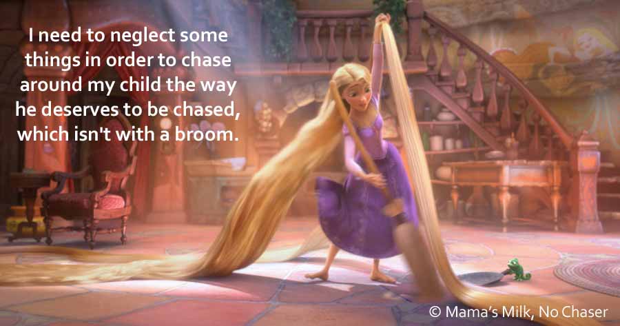 I’m just admitting that I need to kind of neglect some things in order to chase around my child the way he deserves to be chased, which isn’t with a broom. Only so many things can get done during the day, and it seems that housework barely makes it to last place of the To-Do list on a conspicuously frequent basis.