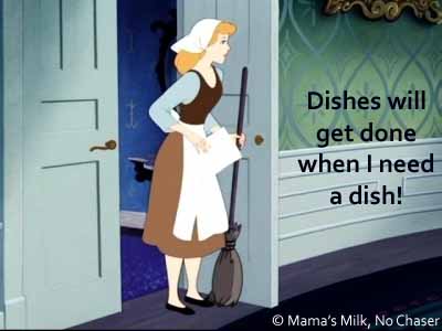 I’m more: “Dishes will get done when I need a dish,” and less: “Dishes will be pre-readied in spotless form in the highly unlikely event that a party of eight stops by for a fancy dinner without prior notice.”