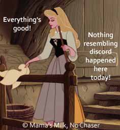 Please know, I’m not saying that keeping (should I say un-keeping?) a messy house is badge of proof that one is a “good” mother, assuming she then has more time to hug, hold, play and talk with her children. Nope, moms who take great pride in their gleaming china cabinets and feel enthusiastic about passing on exquisite homemaking skills to their children have time for being “good” moms, too. Tidy house, tidy kids, tidy tides of life? Hey, good for you, good mom!