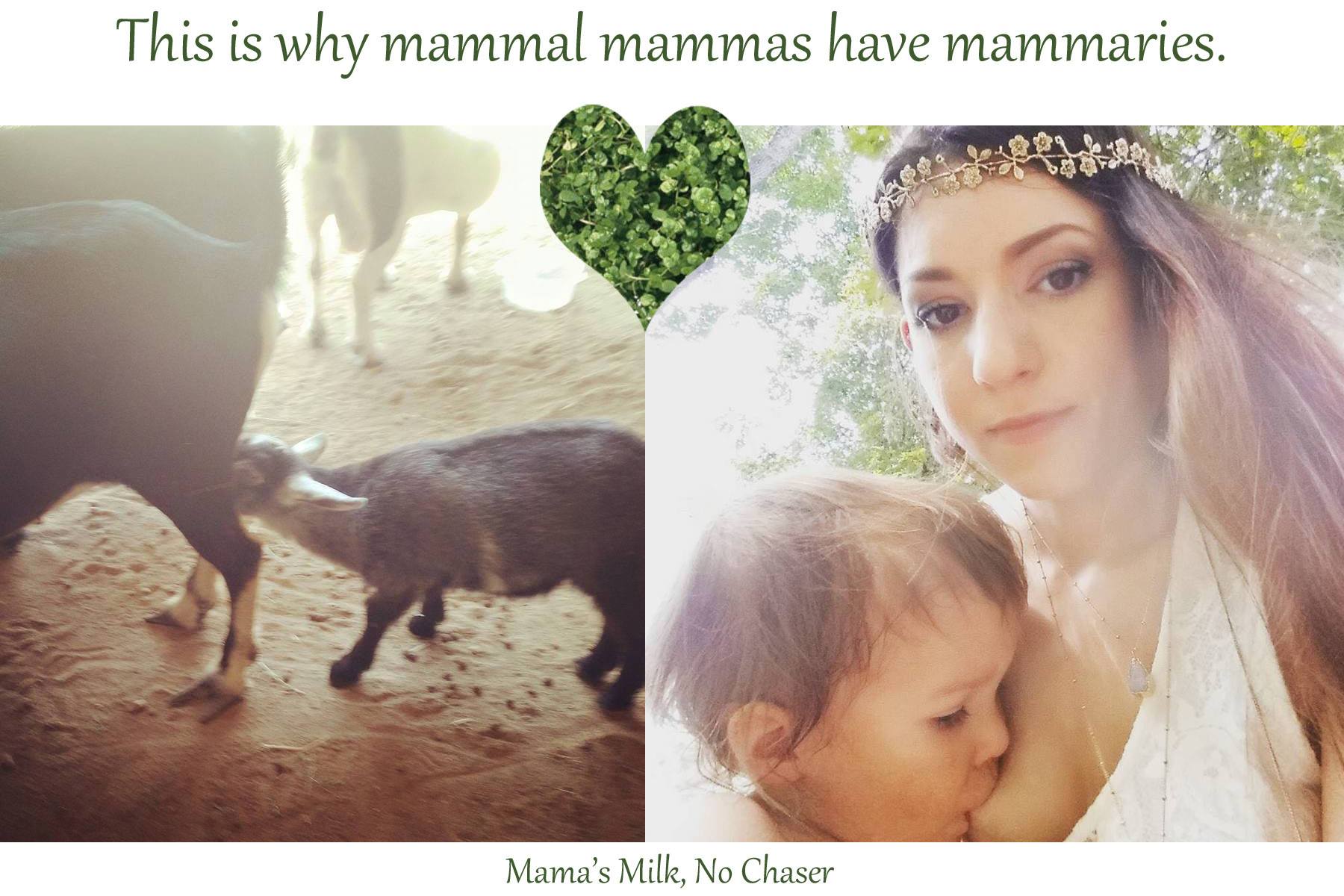 …you insist it’s just something “other animals” do. Modernity is upon us and let’s be honest, breastfeeding is for cave people and goats and dogs and uncivilized, nudist aboriginals and third world families who can’t afford formula and Mother Mary who nursed Jesus a long, long, long time ago.