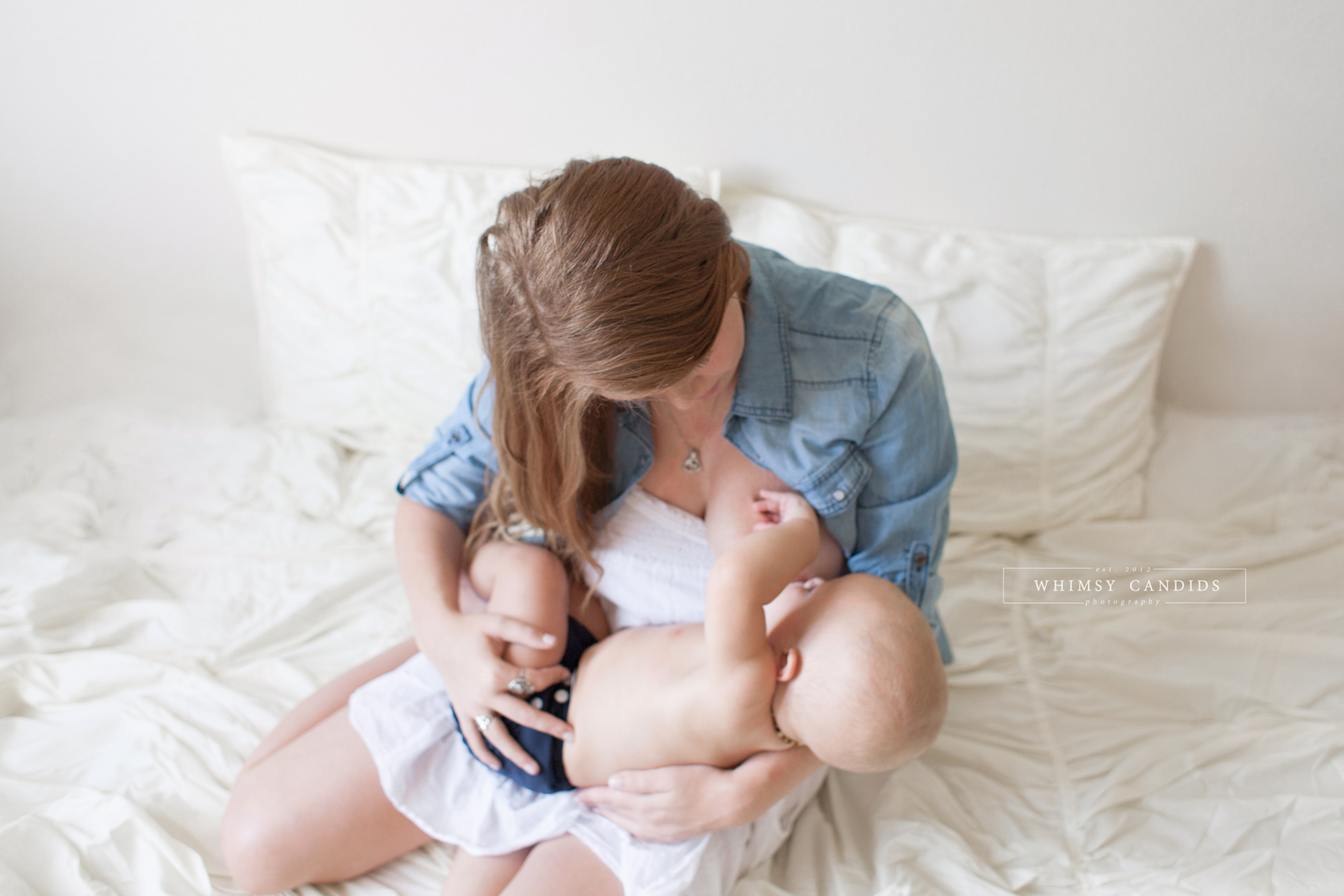 An infant is a breeze to photograph since they nurse on cue and seem to always be hungry or looking for comfort. I suggest that you do not book a nursing session too early on with a newborn. Definitely wait until you have settled into a comfortable groove with baby. You don’t want to book a session while you’re still trying to figure out a proper latch because it simply will not go well. Once you feel that you have gotten the hang of things, you can go ahead and schedule a breastfeeding session.”