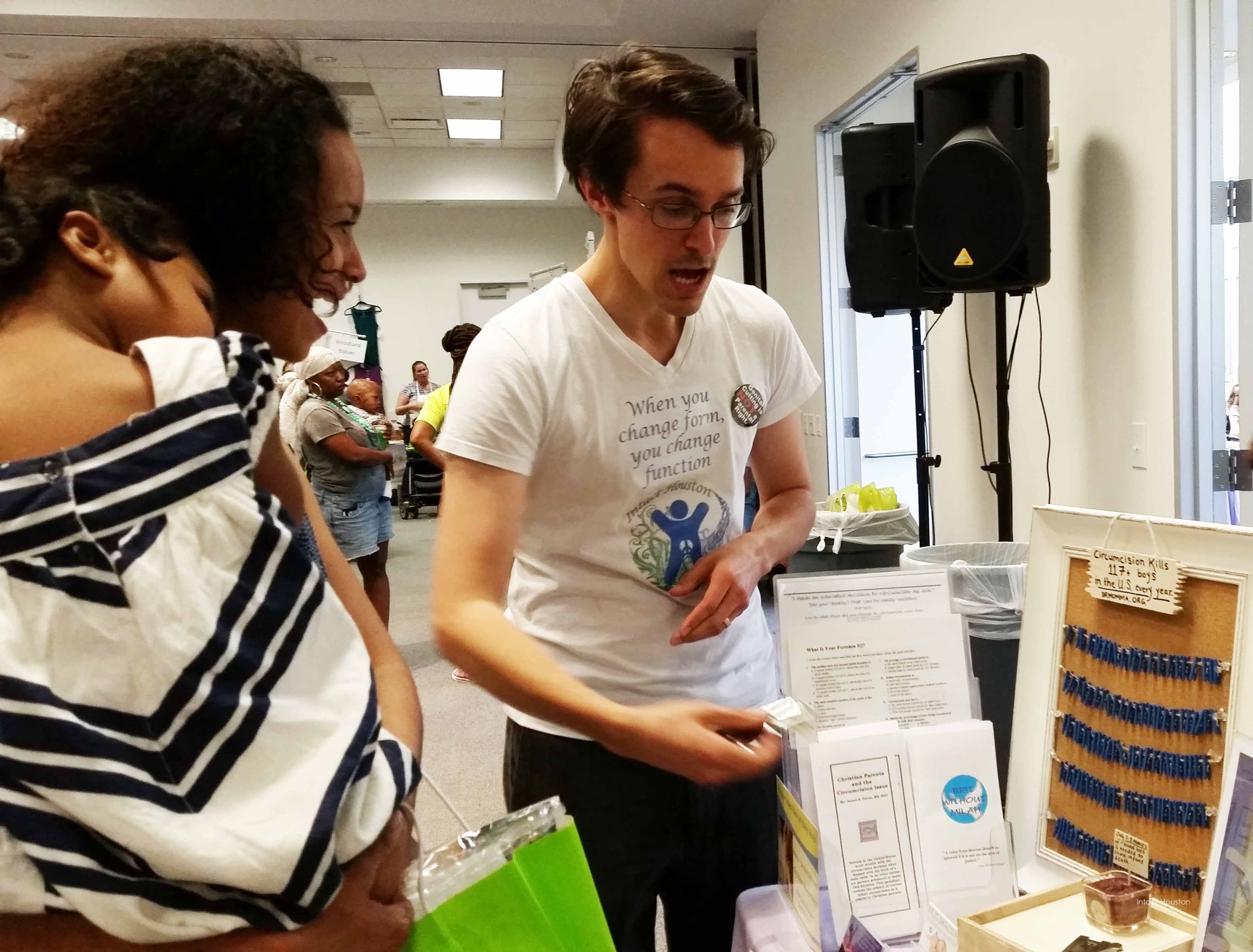 A pregnant mother who was attending the event by herself stopped by asking for advice on how to get her husband on board with keeping their expected son intact. She said she didn’t want to circumcise but he was not going to budge on the issue, and wouldn’t even watch a video.