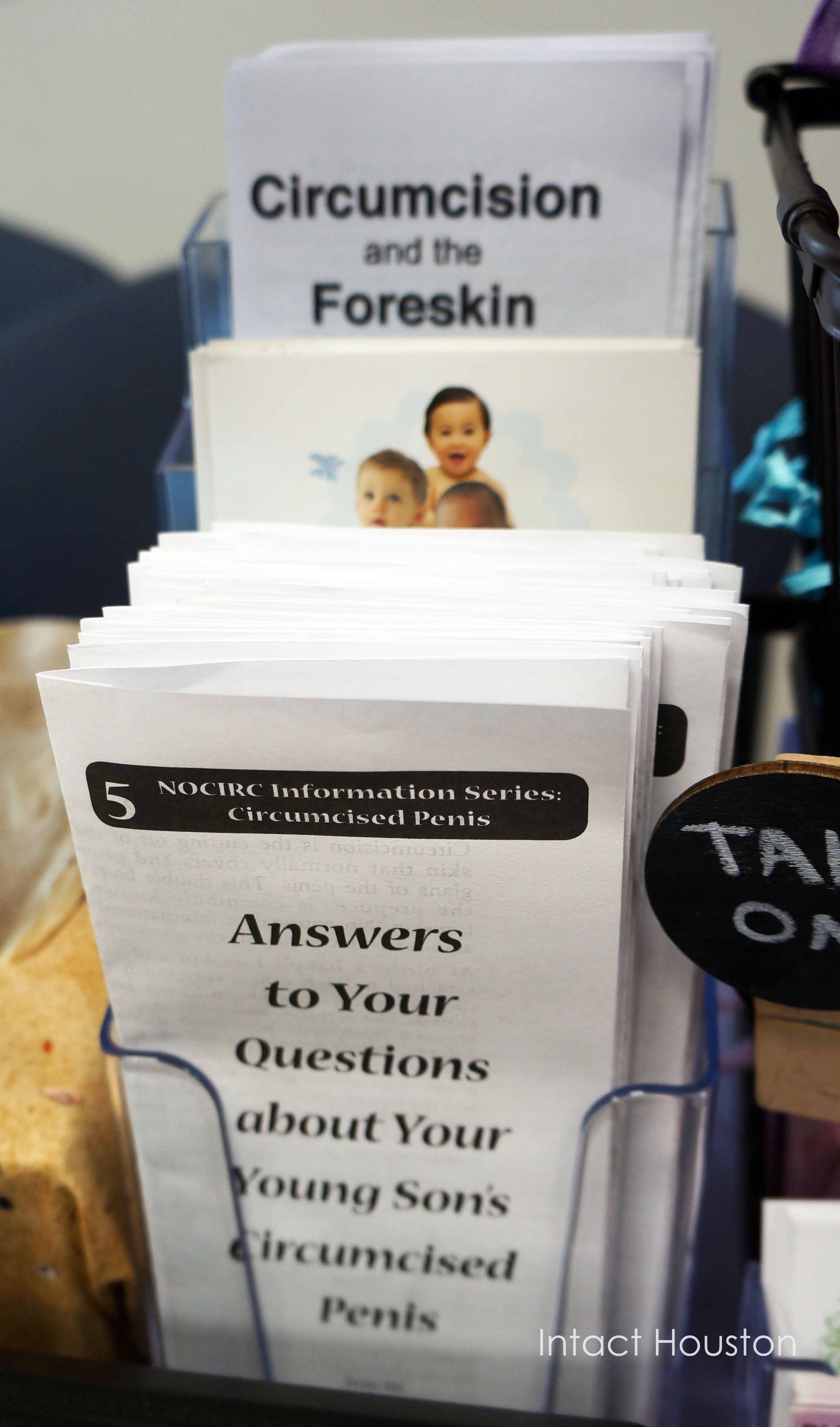 Her husband looked through the “Graphic Cards” box which held photo postcards that show the visual difference between an intact versus circumcised newborn (as well as outcome statistics) and ones showing the difference between intact and circumcised adult male penises over time.