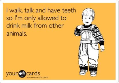 Cow’s milk is the breast milk of a species that needs its young to gain weight expeditiously and, secondarily, to develop a brain that has the capacity to understand life within the limits of a cud-chewing heifer. Human milk is designed to rapidly develop the brain first because it’s in the best interest of our species’ chance for survival; followed then by stable weight gain rather than a focus on rapid gain, which is not ideal for human babies.