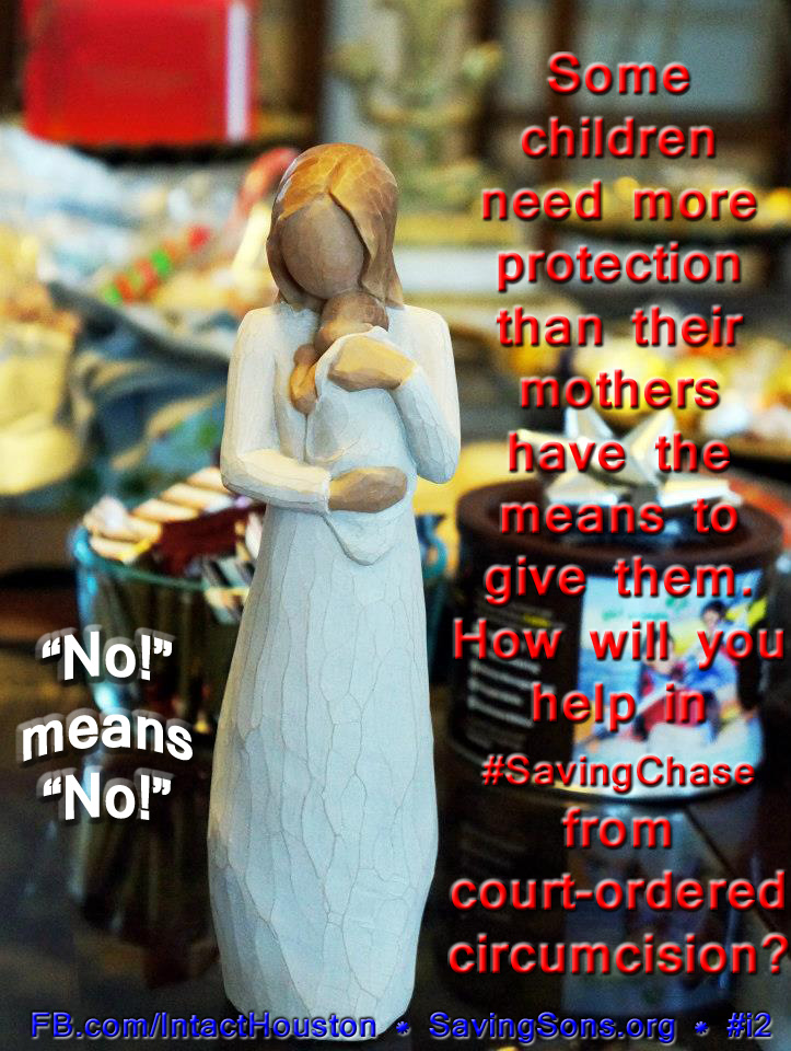 One day soon, he’ll wake up from general anesthesia with a bandage on his penis, holding together the raw wound from a freshly amputated foreskin, stuck with sick pride like a narcissist’s apology. He’ll receive no explanation other than “It’s what your father wanted,” because his anguished mother had been placed under a gag order. After this life-altering day, he will experience the permanent loss of a normally-functioning body organ, and undoubtedly the irreversible physical effects of such. One cannot foresee the severity of either these effects or those of extremely plausible post-traumatic stress and psychological battery.