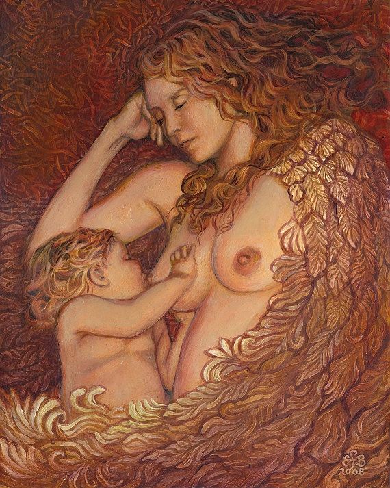 “The Nestling – Breastfeeding Mother Goddess” by EmilyBalivet on Etsy